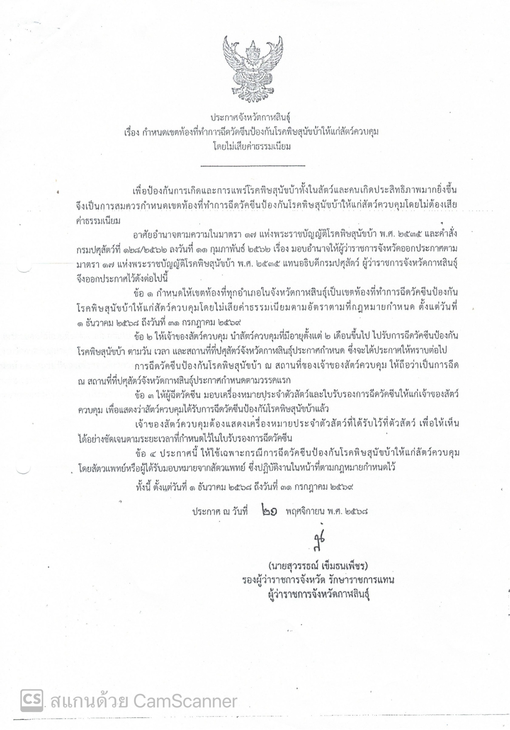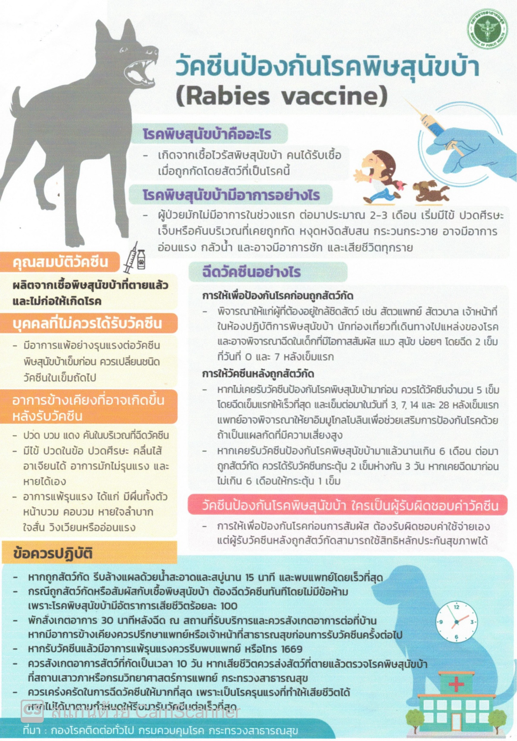 ประชาสัมพันธ์การให้บริการฉีดวัคซีนป้องกันโรคพิษสุนัขบ้า ประจำปี พ.ศ.2569